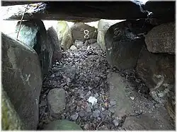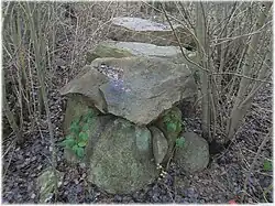 Die Grabkammer wurde 1934 bei der Anlage eines Kellers in einem Sommerhaus entdeckt. Die Kammer besteht aus 11 Tragsteinen und 3 Decksteinen. Bei der Ausgrabung wurden zwei Nachbestattungen aus der Bronzezeit festgestellt, eine Körper- und eine Brandbestattung. Beigaben waren u. a. zwei Bronzedolche, ein Bronzearmring und ein bronzener Pfriem. Die Funde sind verschollen.