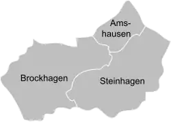 - ↑ Stephanie Reekers: Die Gebietsentwicklung der Kreise und Gemeinden Westfalens 1817–1967. (= Veröffentlichungen des Provinzialinstituts für Westfälische Landes- und Volksforschung des LWL, Reihe 1, Heft 18.). Aschendorff, Münster (Westfalen) 1977, ISBN 3-402-05875-8, S. 284.