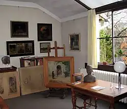 Sowohl Wilhelm Steinhausen als auch seine älteste Tochter, Marie Paquet-Steinhausen nutzten das Ateliergeschoss ihres Wohnhauses für ihre Arbeiten und Studien. Wilhelm Steinhausen malte in Frankfurt Gebäude an und aus: Interieurs und Fassaden von Stadtvillen; 24 Szenen zu Frankfurter Größen im Bavaria-Gebäude, Schillerstr. 2–4, von 1884;[3] die Aula des heutigen Heinrich-von-Gagern-Gymnasium, welche erhalten ist, während seine Ausmalungen der Frankfurter Lukaskirche im Zweiten Weltkrieg verbrannten. Steinhausen hatte zur Anfertigung der Bilder für die Lukaskirche ein zusätzliches Atelier im Frankfurter Städel, welches unter anderem eine große Sammlung von Werken Wilhelm Steinhausens besitzt. Ausgestellt sind dort derzeit zahlreiche kleine Landschaftsbilder von Steinhausen in Öl auf Holz (sogenannte Tagebuchblätter), während zahlreiche größere Bilder (einschließlich eines großen Selbstbildnisses und eines Bildnisses seiner Ehefrau) nicht ausgestellt sind.