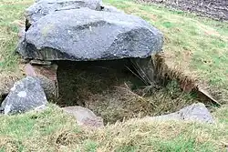 - ↑ Eingetiefte Anlagen bringen jene stabilisierenden Elemente weitgehend mit, die oberirdische errichtete Anlagen durch Steinpackungen und dergleichen in einem Hügel erhalten. Sie brauchen auch keine einwärts geneigten Tragsteine, haben sie gelegentlich aus anderen Gründen aber trotzdem.
