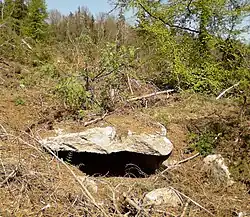 Die Steinkiste (dänisch Hellekiste) aus der Jungsteinzeit besteht aus neun teilweise zweischichtig liegenden Tragsteinen und einem etwa 2,0 × 2,0 m großen Deckstein in der Nordwesthälfte. Der 1,0 m hohe Rundhügel hat etwa 10,0 m Durchmesser. Die nur in Resten erhaltene Kiste könnte auch eine der in Himmerland häufigen Grabkisten sein.