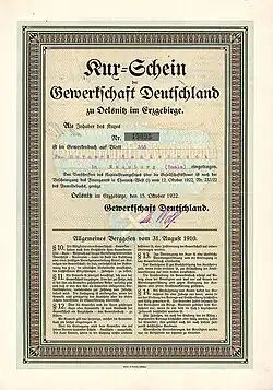 Kuxschein der Gewerkschaft Deutschland vom 15. Oktober 1922