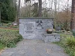 Gedenkstein auf dem Oelsnitzer Friedhof für die 57 Opfer des Grubenunglückes auf dem Friedens-Schacht der Gewerkschaft Deutschland im Jahr 1921