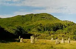 In einer Baumgruppe etwa 100 m nordwestlich des Steinkreises liegt der Rest eines Kerb Cairns[1] mit Steineinfassung. Er hat etwa 6,5 m Durchmesser und einen „falschen“ Eintritt im Südosten. Die Steine im nördlichen und südlichen Bogen sind weitgehend in situ.
