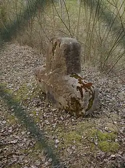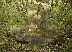 Das fast bis zum Querbalken im Boden eingesunkene Kreuz aus Sandstein ist etwa 110 cm hoch, 120 cm breit und 35 cm tief. Oberhalb des Schaftes wurde deutlich sichtbar Zement angebracht, was auf mögliche Ausbesserungen von Beschädigungen hinweist. Auf der derzeit nicht sichtbaren Rückseite befinden sich laut einer Beschreibung aus den 1940er Jahren zwei Wetzrillen, ein kleines eingeritztes Kreuz und ein vertieftes kleines Dreieck mit einem Pfeil, bei dem es sich nach damaligen Vermutungen um Zinken handeln könnte.
