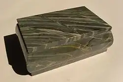 Der Jaspis der Lagerstätte Rewnewskoje (Ревневское) ist ein grün-grau gebändertes, brokatartiges und ungewöhnlich wirkendes Dekorationsgestein mit kryptokristallinem Gefüge. Mit der Politur erhält der Jaspis eine spiegelnde Oberfläche. Sie wird seit dem 19. Jahrhundert intensiver ausgebeutet und befindet sich unweit der Stadt Smeinogorsk am namensgebenden Berg Rewnjucha (гора Ревнюха; Höhe 1110 Meter).[9] Aus diesem Gestein wurden besonders viele wertvolle Objekte hergestellt, die heute in russischen und ausländischen Museen zu den besonderen Sammlungsobjekten zählen.