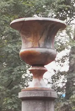 • Vorortsiedlung: Vase auf Säule (gelber Granit)