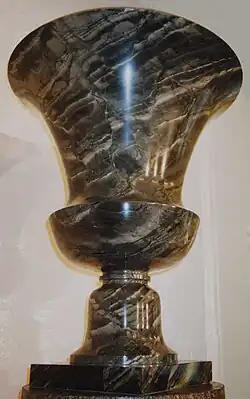 • Pawlowsk-Palast (Павловский дворец): verschiedene Vasen (Revnev-Jaspis, braunroter Korgon-Porphyr, Ridder-Brekzie)