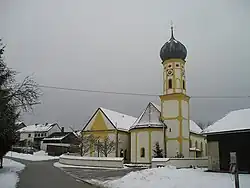 Die Expositurkirche, die zur Pfarrei Sollern gehört, ist dem hl. Martin geweiht und wurde 1770 erbaut. 1871 und 1901 erfolgten Renovierungen. Im Innern findet sich ein Grabstein für Felix von Muggenthal († 1735). 1981 wurde die Kirche aufgrund des Bevölkerungszuwachses erweitert; Architekt Blasius Spreng errichtete parallel zum alten Längsbau einen Neubau und verband beide harmonisch miteinander. Am 3. März 2017 kam es in dem Gotteshaus zu einem Großbrand, wobei die Kirche erheblich beschädigt wurde. So brannten unter anderem die Dachstühle beider Kirchenschiffe völlig ab.[3]