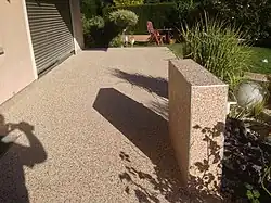 Das Bindemittel wird mit naturfarbenen runden Marmorkieseln oder gefärbten Quarziten in verschiedenen Körnungen und Farben vermengt und auf Untergründe wie Estrich, Beton und Gussasphalt oder auch über bestehenden Fußbodenbelägen aufgetragen.
