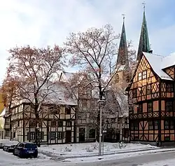 - ↑ Hans-Hartmut Schauer, Quedlinburg, Fachwerkstatt, Weltkulturerbe, Verlag Bauwesen Berlin 1999, ISBN 3-345-00676-6, Seite 149
