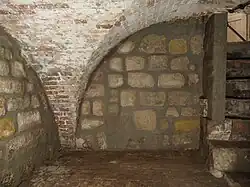 Hinter der Sandsteinmauer (siehe Foto „Ostgiebel“) befand sich eine „schwarze Küche“, in der in vorausgegangenen Zeiten das Essen der Bewohner auf offenem Feuer gekocht wurde. Reste von rußgeschwärzten Balken sind noch nachweisbar. Auch ein Schornstein für den Rauchabzug ist vorhanden.