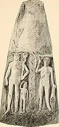 Die Darstellungen auf den vier Seiten des 2,85 m hohen Menhirs werden als Mercurius (begleitet von einem Verstorbenen oder von Amor), Hercules, Mars und Apollon (begleitet von einer weiblichen Figur, möglicherweise Hygieia/Sirona) interpretiert.