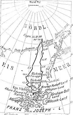 In leidlich guter Fahrt – unterwegs begegnete man der Capella mit den Mitgliedern der Wellman-Expedition an Bord – gelangte das Forschungsschiff nach Kronprinz-Rudolf-Land, der nördlichsten Insel des Archipels. Nach einem sehr harten Winter brach die Expedition endlich am 21. Februar 1900 in drei Gruppen in Richtung Norden auf. Die erste Gruppe, unter der Leitung des Schiffsarztes Dr. Cavalli sollte nach 15 Tagen, die zweite unter der Führung des Grafen Querini nach 30, und die dritte, unter dem Kommando von Umberto Cagni, nach 45 Tagen des Vordringens wieder den Rückmarsch antreten.