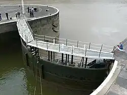- Klapptor als einflügeliges Schleusentor mit waagerechter, am Schleusenkammerboden angebrachter Drehachse.