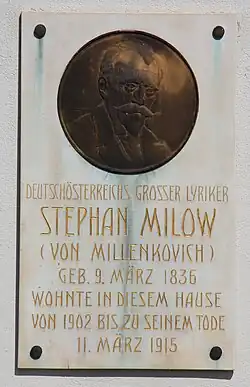 - 1911 Zum 75. Geburtstag wurde die Marktgasse in Mödling in Stephan-Milow-Gasse umbenannt