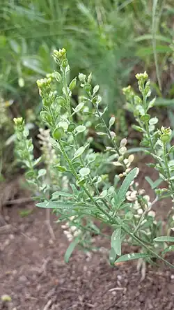 Habitus mit Laubblättern, Schötchen und Blüten -
