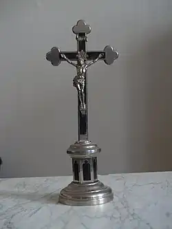 Die Versehgarnitur benutzte früher der Priester bei der Spendung der Krankensalbung. Die Garnitur beinhaltet ein Aufstellkreuz, ein Festhaltekreuz und Schälchen für Öl und Reinigung. Sie war oft Bestandteil im Haushalt einer Familie.