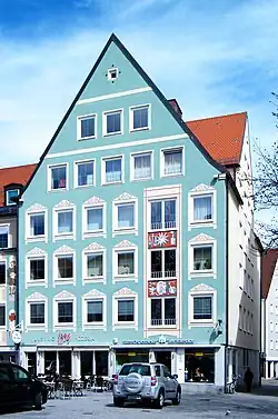Das dreigeschossige Haus besaß auf der zum Rathausplatz hin gelegenen Traufseite eine durch fünf Fensterachsen gegliederte Neorenaissancefassade. Das steile, viergeschossige Satteldach wurde architektonisch durch vier Gaubenreihen gegliedert. Gegen die Heinrichgasse, einen schmalen Verbindungsweg vom Stadttheater zum Rathausplatz, befanden sich zum Teil vermauerte rundbogige und spitzbogige Lichtschlitze. Der von Michael Petzet als bemerkenswert beschriebene spätgotische Giebel hatte zwei große Spitzbogenblenden unter dementsprechenden Dreieckfeldern in den Zwickeln. Das Seitenportal des frühen 17. Jahrhunderts bestand aus Pilastern unter einem Dreiecksgiebel. Im Erdgeschoss gab es Zimmer mit Bandelwerkstuck aus der Zeit von 1730.[2]