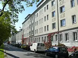 - Sterndamm 114/116/118/120 einschließlich Eckbau zur Megedestraße: Hier entstand im Jahr 1928 ein viergeschossiger Wohntrakt mit Satteldach und Rundbogen-Loggien in den oberen Etagen. Der Komplex war in der DDR-Zeit als Baudenkmal ausgewiesen.