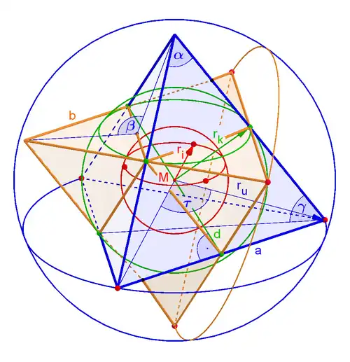| Größen eines Sterntetraeders mit Kantenlänge a bzw. b = a/2 | ||