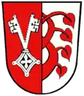 Die Wappenbeschreibung lautet: Gespalten von Rot und Silber; vorne ein silberner Doppelschlüssel mit einem Griff, hinten am Spalt ein verschlungener roter Lindenzweig. Das Wappen stammt von 1969. Der Doppelschlüssel ist das Zeichen des heiligen Petrus. Der Lindenzweig stammt aus dem Wappen der Grafen von Seckendorff.[40]