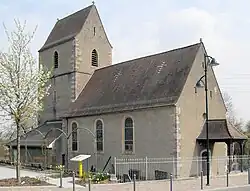 Die Kirche St. Peter und Paul besteht aus dem mittelalterlichen Chorturm mit Satteldach, Eckquadern und gotischen Schallöffnungen und dem 1700 neu aufgebauten Schiff.