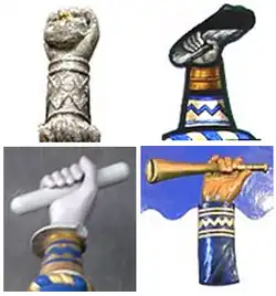 - ↑ Wie in einem gerahmten Mauerdenkmal in der Kirche von Exford (Somerset) gesehen. Das Denkmal erinnert an Morland Greig (1864–1915) aus Edgcott (Exford), Master der Devon & Somerset Staghounds, der beim Einsatz in Gallipoli getötet wurde. Die Plakette ist auch in das Mauerdenkmal in der Kirche St Giles in the Wood in Devon geschnitten, aber mit einem Palmwedel in der Hand. Sie erinnert an Captain John Oliver Clemson (1882–1915) aus Stevenstone, der auch beim Kampf in demselben Regiment in Gallipoli getötet wurde.