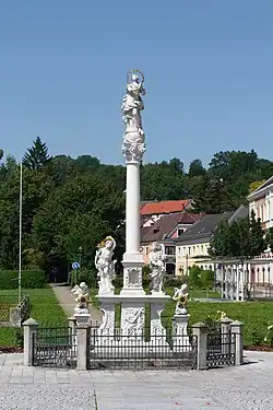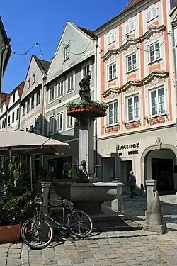 Die Mariensäule am Wieserfeldplatz wird auch Messererkreuz genannt. Bis 1848 stand dieses bei der Friedhofsstiege neben der Gleinkergasse.[3]