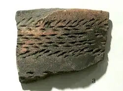 Wie die Kultur der Linearbandkeramik ist auch die Kultur der Stichbandkeramik nach der Verzierungstechnik auf der Keramik benannt: Die einzelnen Motive, Winkelbänder und vertikale und horizontale Linien, sind mittels eines mehrzinkigen Gerätes aus vielen Einstichen zusammengesetzt.[3]
