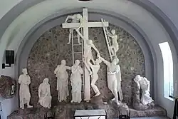 Im Friedhof, an der Kirchenmauer, befindet sich auch das Grabdenkmal des polnischen Königs Boleslaus II. Es ist ein großes römisches Marmorrelief mit der Darstellung eines Pferdes. Die umlaufende Inschrift lautet: REX BOLESLAVS OCCISOR SANCTI STANISLAI EPISCOPI CRACOVIENSIS (= König Boleslaus, Mörder des heiligen Stanislaus, Bischof von Krakaus). Über der Marmortafel hängt eine große Bildtafel, auf der der König in Rüstung sowie in sieben Bildern Szenen der Boleslauslegende dargestellt sind. Links vom Grabmal befindet sich ein Gedenkstein, den die Soldaten der 2. polnischen Legion 1945 hier aufgestellt haben.[4]