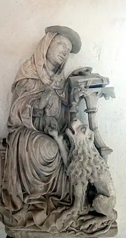 Zu den bedeutendsten Kunstwerken der Ebersdorfer Stiftskirche werden die vier Stücke gezählt, die dem als Hans Witten aus Köln identifizierten Meister H. W. zugeordnet werden. Zu den insgesamt vierzehn Kunstwerken in Chemnitz, die diesem Bildhauer und Bildschnitzer zugeschrieben werden, gehören zudem die Geißelsäule und das Nordportal der Schlosskirche sowie der Altar der St.-Jodokus-Kirche in Chemnitz-Glösa.[40] In der Ebersdorfer Kirche werden ihm das Harras-Epitaph sowie die Pulthalterfiguren und das große Triumphkreuz zugeschrieben.