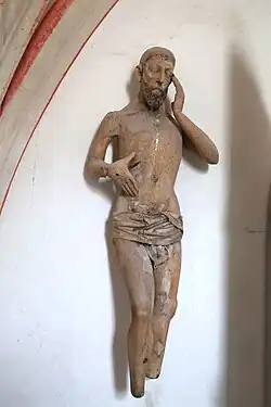 Weitere Schnitzfiguren, die an verschiedenen Stellen in der Kirche aufgestellt sind, stammen aus der Zeit kurz vor und nach 1500. Dazu zählen eine Darstellung des Erzengels Michael als Seelenwäger, eine sogenannte schöne Madonna sowie zwei Skulpturen des auferstandenen Christus, eine beschädigte, bei der der fast nackte Christus mit Leidensmiene auf die Seitenwunde weist, und eine, die den in ein rotes Tuch gehüllten Auferstandenen mit fehlenden Händen zwischen zwei Engeln zeigt. Die letzten drei Figuren standen vermutlich ursprünglich im Auszug eines Altars.