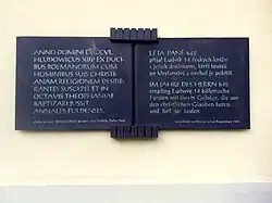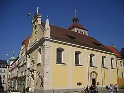 Die Stiftskirche St. Johann geht in ihren Wurzeln auf einen nicht mehr genau zu lokalisierenden Bau zurück, der als Taufkirche des alten Regensburger Domes diente. Deshalb wird die in den Fuldaer Annalen bezeugte Taufe von vierzehn böhmischen Fürsten am Oktavtag des Epiphaniefestes im Jahr 845 hier verortet. Daran erinnert seit 1995 eine Gedenktafel an der nördlichen Außenmauer der Kirche.[1]
