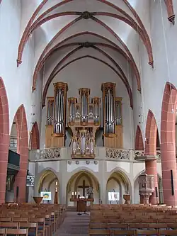 Auf katholischer Seite steht die Orgel ebenfalls auf einer Empore, die sich aber im hinteren Teil des Kirchenraums befindet. Die Orgel wurde 1892 von der Orgelfirma G. F. Steinmeyer & Co. errichtet. Sie verfügt über 27 Register auf zwei Manualen und Pedal. 2001/02 wurde das romantische Instrument gereinigt und generalüberholt.[4]