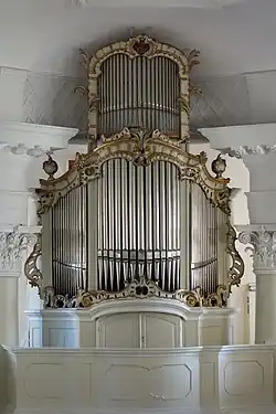 Die erste Orgel erhielt die jetzige Kirche 1767/68, den Prospekt hatte der Braunschweiger Bildhauer Oden entworfen. Die Orgel wurde von dem Wolfenbütteler Hoforgelbauer Johann Christoph Hüsemann erbaut, mit der Bemalung wurde der Hofmaler Heinrich Christoph Piccart beauftragt. Die über der Westempore aufgestellte Orgel wurde am 19. Februar 1769 durch den Organisten Broyer abgenommen. 1891 wurde von Furtwängler & Hammer ein neues Orgelwerk mit 18 Registern und zwei Manualen in das barocke Gehäuse eingebaut.[8] 1965 beschloss das Landeskirchenamt einen Neubau der Orgel mit Wiederverwendung des denkmalgeschützten historischen Gehäuses. Die neue Orgel wurde von Peter Reichmann gebaut und konnte 1976 eingeweiht werden. Sie hat zwei Manuale und 17 Register mit insgesamt 1072 Pfeifen.[9][10]