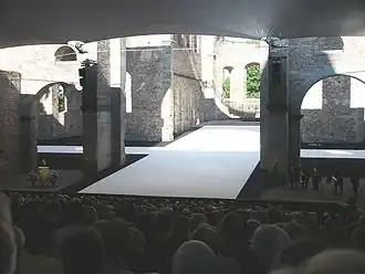 Festspielbühne in der Stiftsruine, vorn das Langhaus als überdachter Zuschauerraum