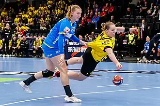 ![]() Stine Eiberg Jørgensen (links) in der Verteidigung gegen Lisa Antl | |