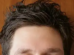- eine hohe Stirn haben = scherzhaft für: eine Glatze haben