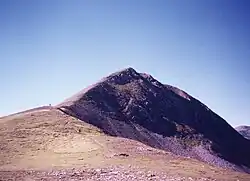 | Blick von Westen über den Einschnitt des Lairig Leacach auf den Stob Coire Easain, links dahinter der Stob a’ Choire Mheadhoin | ||