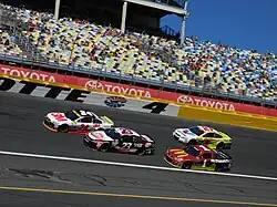 Stockcar, auch Stock-Car oder Stock Car, bezeichnet in der amerikanischen Version eine ursprünglich aus Nordamerika stammende Rennsportklasse deren Wettbewerbe auf Ovalkursen und Straßenkursen mit einer Länge von 0,25 bis 2,66 Meilen (0,4 bis 4,3 km) ausgetragen werden. Neben den vorrangig benutzten asphaltierten Kursen kommen historisch bedingt auch unbefestigte „Dirt-Tracks“ dafür zum Einsatz.[1] Der Name ergibt sich geschichtlich aus der ursprünglichen Verwendung von Serienfahrzeugen („stockcar“ – „Auto aus dem Lager“). Heute werden jedoch speziell für den Rennsport gebaute und optimierte Fahrzeuge eingesetzt. Größter und bekanntester Dachverband ist die nordamerikanische NASCAR, deren bekannteste Serie die NASCAR Cup Series als professionelle Stock-Car-Rennserie auf höchstem Niveau ist. Daneben gibt es auch Stockcar-Serien und Veranstaltungen in anderen Ländern und Regionen.