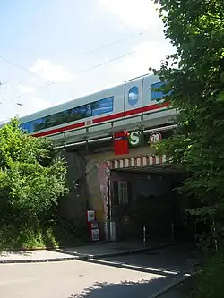 Seit dem Bau der Eisenbahn besteht das ehemalige Schrankenwärterhaus der Bahnlinie Pasing-Starnberg, zweigeschossiger kleiner Backsteinbau mit überstehendem Satteldach, um 1853/54.