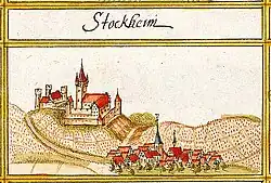 - Stockheim. In: Karl Eduard Paulus (Hrsg.): Beschreibung des Oberamts Brackenheim (= Die Württembergischen Oberamtsbeschreibungen 1824–1886. Band 55). H. Lindemann, Stuttgart 1873, S. 427–438 (Volltext [Wikisource]).
