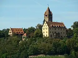 - Schloss Stocksberg geht vermutlich auf einen hochmittelalterlichen Bau zurück, wurde 1525 von Bauern niedergebrannt, bis 1574 als zweiflügelige Anlage im Stil der Renaissance wieder aufgebaut, wobei sich in der baulichen Ausführung zahlreiche Parallelen zum Deutschordensschloss Kirchhausen zeigen. Das Schloss war ab 1806 Staatsdomäne und kam 1832 in Privatbesitz. 1843 erwarb Alfred von Neipperg das Schloss, sein Bruder und Erbe Erwin von Neipperg verkaufte es 1873 in Gemeindebesitz. Die Gemeinde veräußerte die Anlage 1890 an den Sektfabrikanten Eduard Gießler. Im Zweiten Weltkrieg war Schloss Stocksberg vom Reichsarbeitsdienst belegt, später richtete die Stadt Heilbronn ein Altersheim als Ausweichquartier des Heilbronner Katharinenstifts dort ein. Ab 1954 wurde das Anwesen aufgeteilt. Ein Landwirt erwarb die Wirtschaftsgebäude, das Schlossgebäude wurde 1969 an einen Fabrikanten verkauft. Der steinerne Torbogen in den Weinbergen markiert das einstige Ende des gemeindeeigenen Hohlwegs beim Aufstieg zum Schloss.