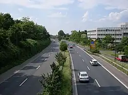 Der Flughafen liegt im benachbarten Lohausen, wird aber überwiegend über Stockumer Gebiet (Danziger Straße (B 8)) angefahren.