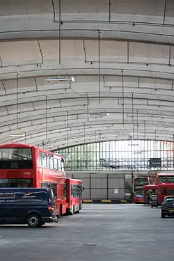 Die Garage bietet fast 7.000 Quadratmeter durchgehende Parkfläche und konnte ursprünglich 200 Busse aufnehmen.