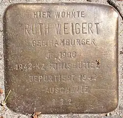 - ↑ Stolpersteine in Hamburg: Ruth Weigert (geborene Hamburger), abgerufen am 6. Dezember 2020