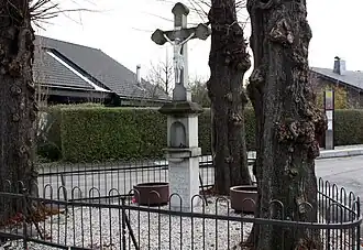 Auf dem Kirchhof stehen noch 9 Grabsteine von Besitzern der Gutshöfe in Stotzheim. Der älteste ist aus dem Jahre 1524.