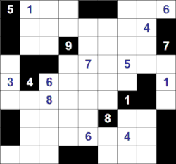 Im dritten Schritt werden die schwarzen Felder soweit möglich mit Ziffern gefüllt, wobei die Zeilen-Spalten-Regel beachtet werden muss. Hier können deshalb auch schwarze Felder leer bleiben, wenn es keine zulässige Ziffer gibt.