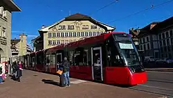 Die Strassenbahn Bern, auch Berner Tram,[1] ist der wichtigste Träger des öffentlichen Nahverkehrs in der schweizerischen Bundesstadt Bern. Betrieben wird sie vom Verkehrsunternehmen Städtische Verkehrsbetriebe Bern (SVB), das seit 2000 meist unter der Marketingbezeichnung Bernmobil auftritt und seit 1999 ein rechtlich eigenständiges Unternehmen ist. Dieses betreibt auch einen Grossteil des 1924 aufgenommenen städtischen Autobusverkehrs sowie den 1940 eröffneten Trolleybus Bern. Anfangs wurde die Trams von der Berner Tramway-Gesellschaft (BTG) betrieben, zwischen 1900 und 1999 durch die Stadt selbst. Bis 1947 hiess die zuständige Dienstabteilung Städtische Strassenbahnen Bern (SSB), danach Städtische Verkehrsbetriebe Bern (SVB).